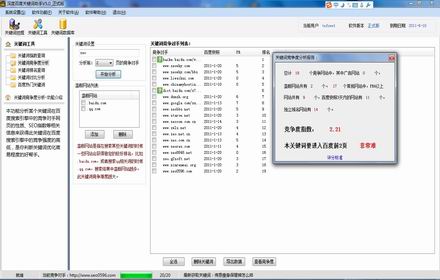 软件特色功能。软件分析每个关键词的百度竞争对手网页(支持前100名),并设置 竞争度手百度快照、PR、垄断网站、广告网站等多个分析指标。详细的获取某个关键词优化的难易程度。