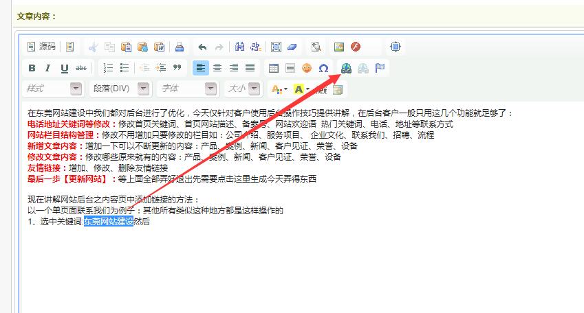 现在讲解网站后台之内容页中添加链接的方法: