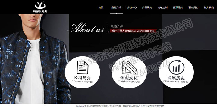 “韩宇来”服饰选用国际、国内名牌面料、广泛应用棉与涤、毛与麻合成的面质感强烈的高档质材,在穿着上追求舒适自然,外观上推崇时尚简约,适合各个年龄层次的人士穿着,充 分展示洒脱、自然、活力、精致、高雅的着装风采。公司秉承“诚信为本”的经营理念,以完美的产品,完善的服务缔造一流的“韩宇来”品牌。