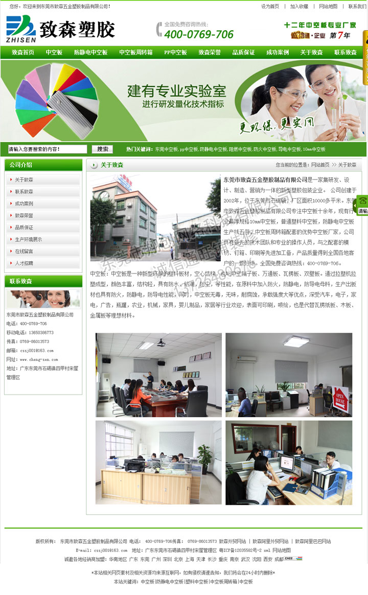 东莞市致森五金塑胶制品有限公司是一家集研发、设计、制造、营销为一体的新型塑胶包装企业。 公司创建于2002年,位于东莞市石碣镇,厂区面积10000多平米。东莞市致森五金塑胶制品有限公司专注中空板十余年,现有行业最厚规格10mm中空板,普通塑料中空板,防静电中空板生产线五条,中空板周转箱配套的优势中空板厂家,公司具有领先的技术团队和专业的操作人员,与之配套的模切、钉箱、印刷等先进加工备,产品质量得到全国各地客户的一致好评。
